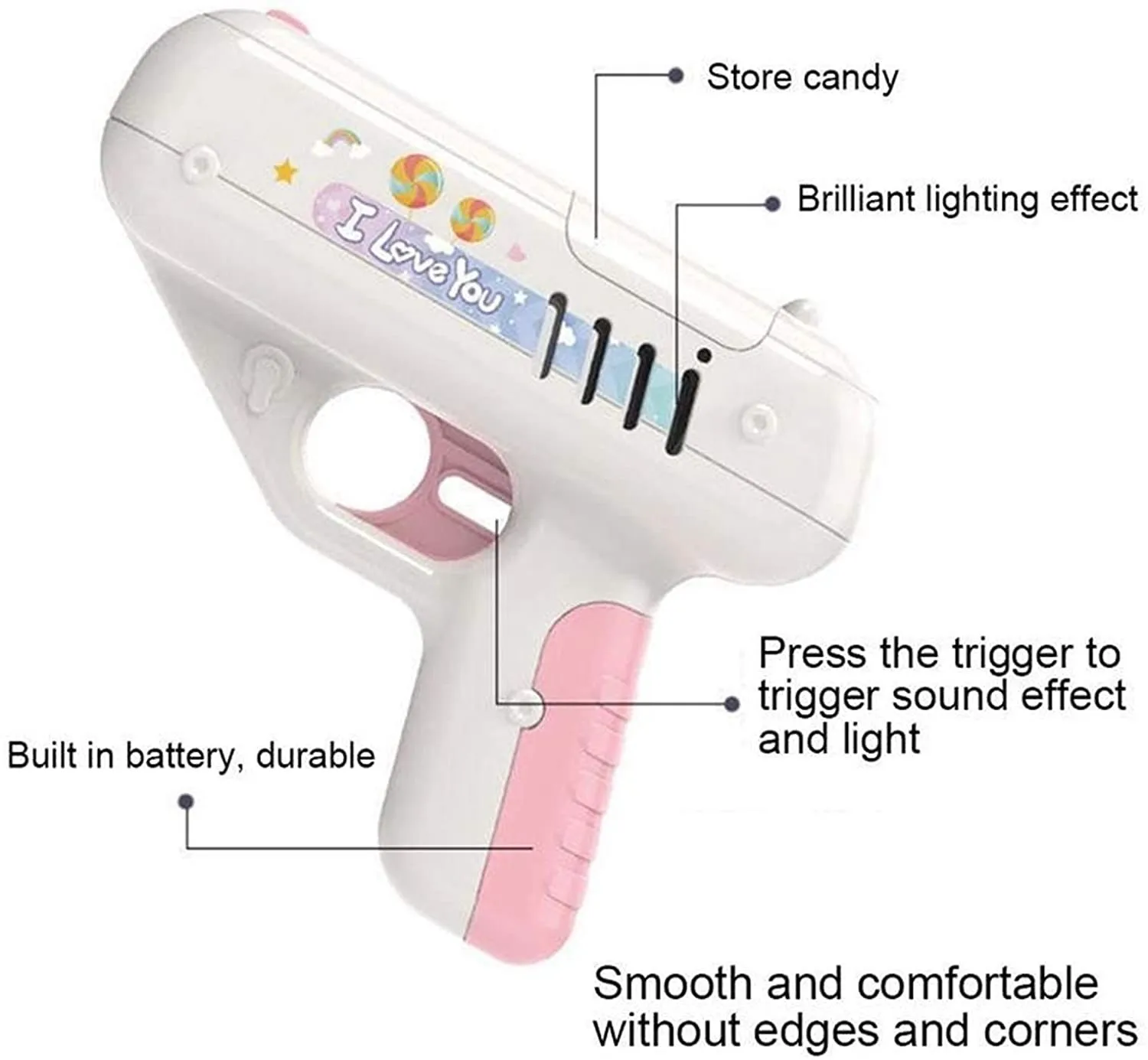 [xlmodel]-[custom]-[8888] Product name: LOVE candy storage gun Color: pink, purple, red, yellow Product size: 14*12cm Cute and interesting shape, mini cute, two-color optional, high value Exquisite gift box, bring that her him Package Include: 1Pc candy storage gun (not including lollipops) Note: There is 1 ~ 2cm error because munual...