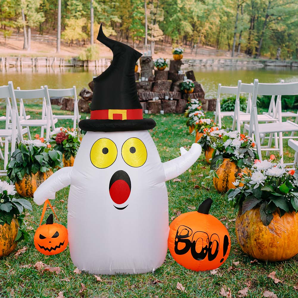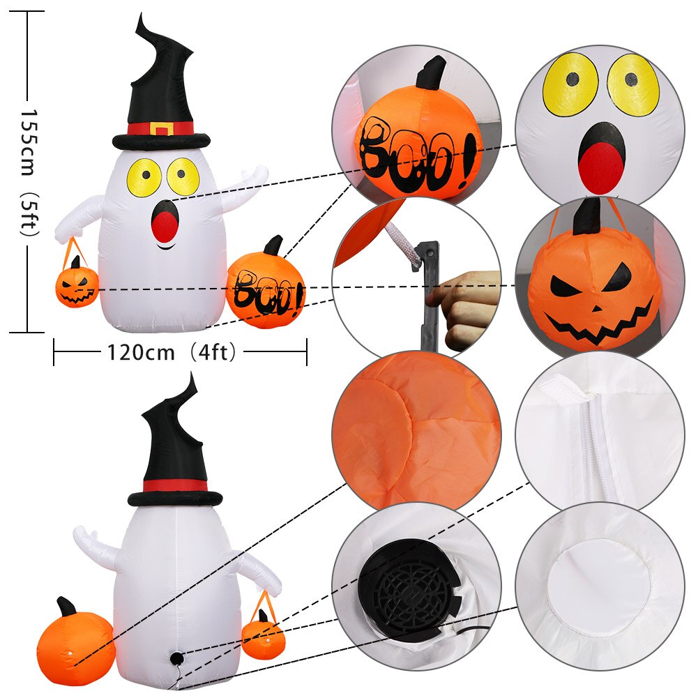 ◆ The 5-foot-tall Halloween inflatable ghost is a blown-up yard/garden/home decoration.
