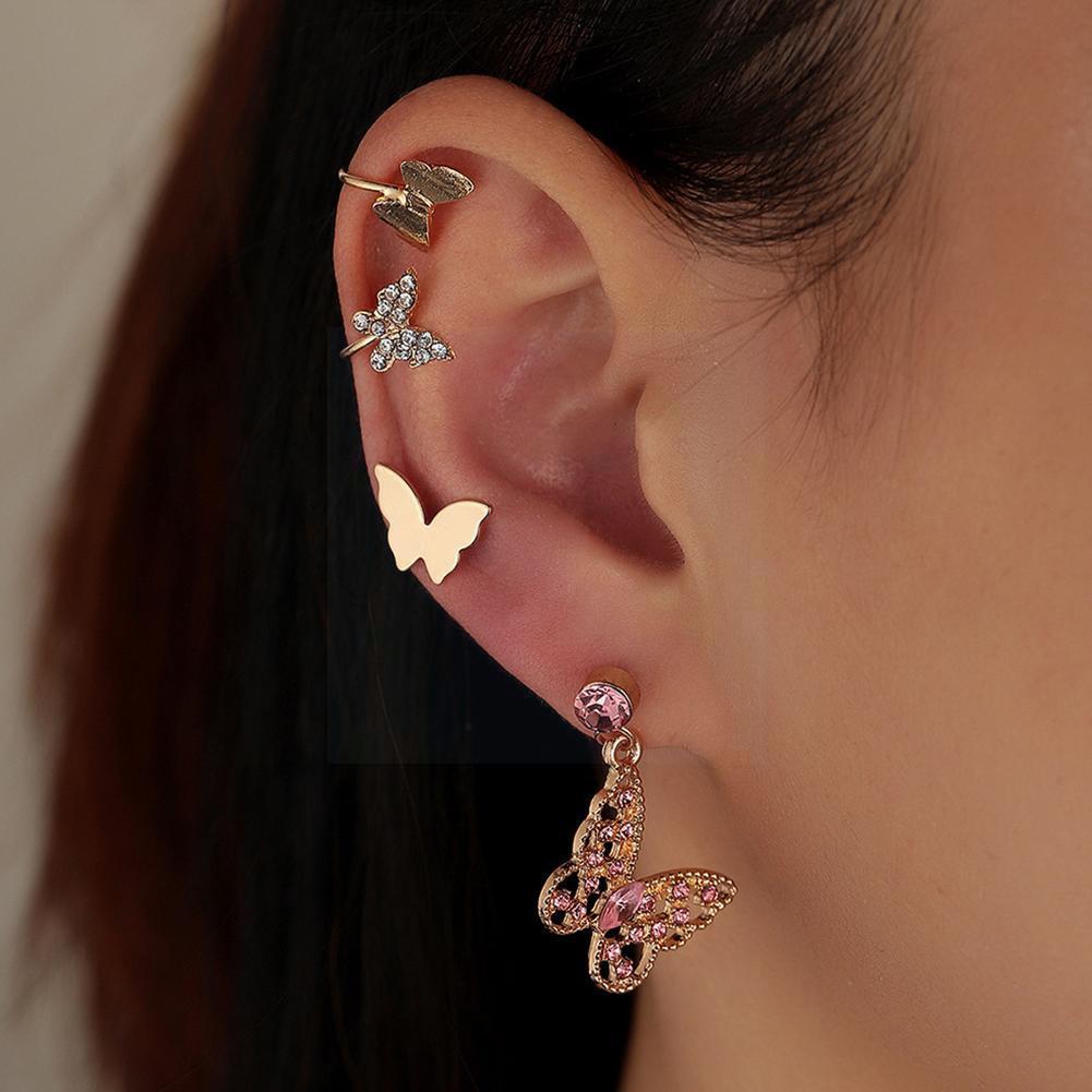 Four-piece set of European and American personality butterfly ear clips illustrate: Material: Alloy Color as shown Weight: 5.4g Ear clip: inner diameter 1cm Earrings: 2cm wide and 2.9cm high Note: 1. As we all know, different computers display colors in different ways, and the actual project color may be slightly...