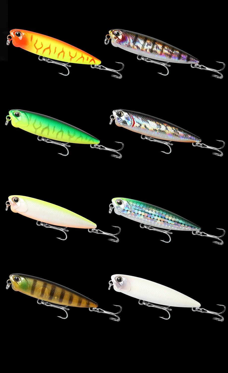 Use vivid 3D eyes to make the bait come alive, making the bait look like a real fish, floating in the water when fishing.