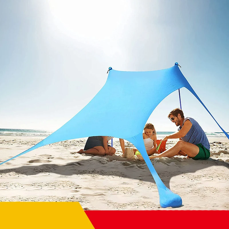 3. Natural anchoring: Beach tents are anchored by natural methods such as sand or rocks. It is a light, portable, and waterproof sun visor that allows you to relax while watching the waves, a football game or a picnic.
